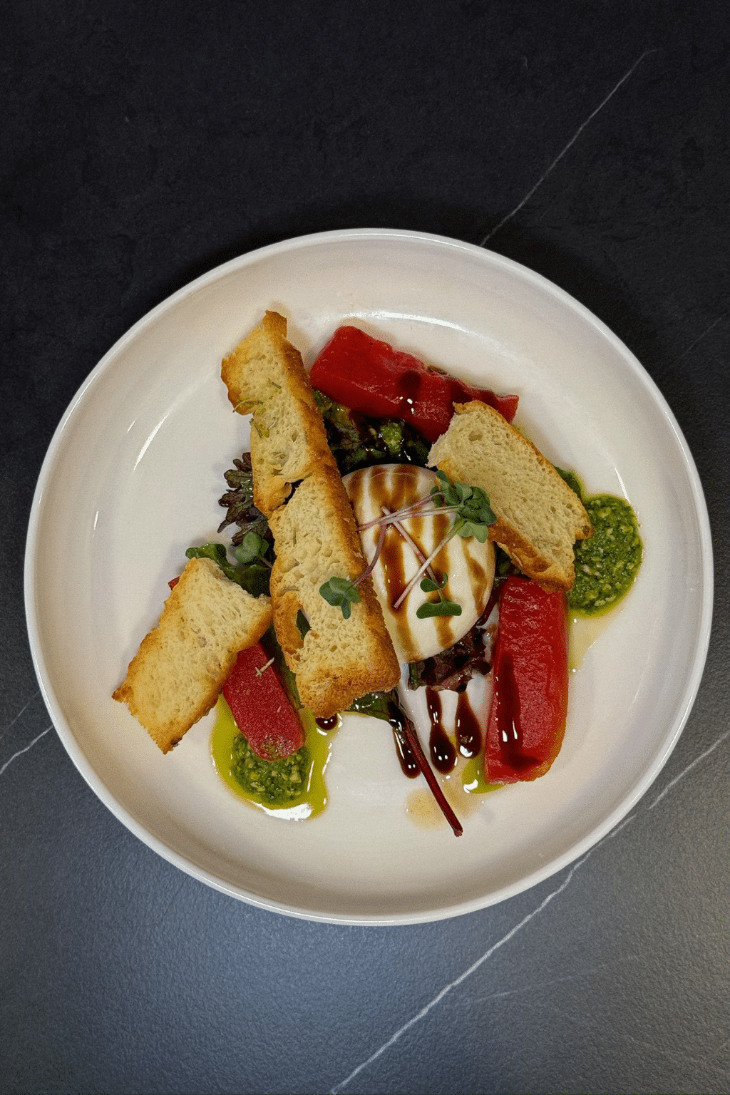 Rostbrot / Wachtelei / Wildkräutersalat / Kapern