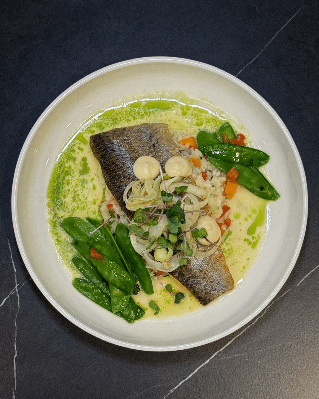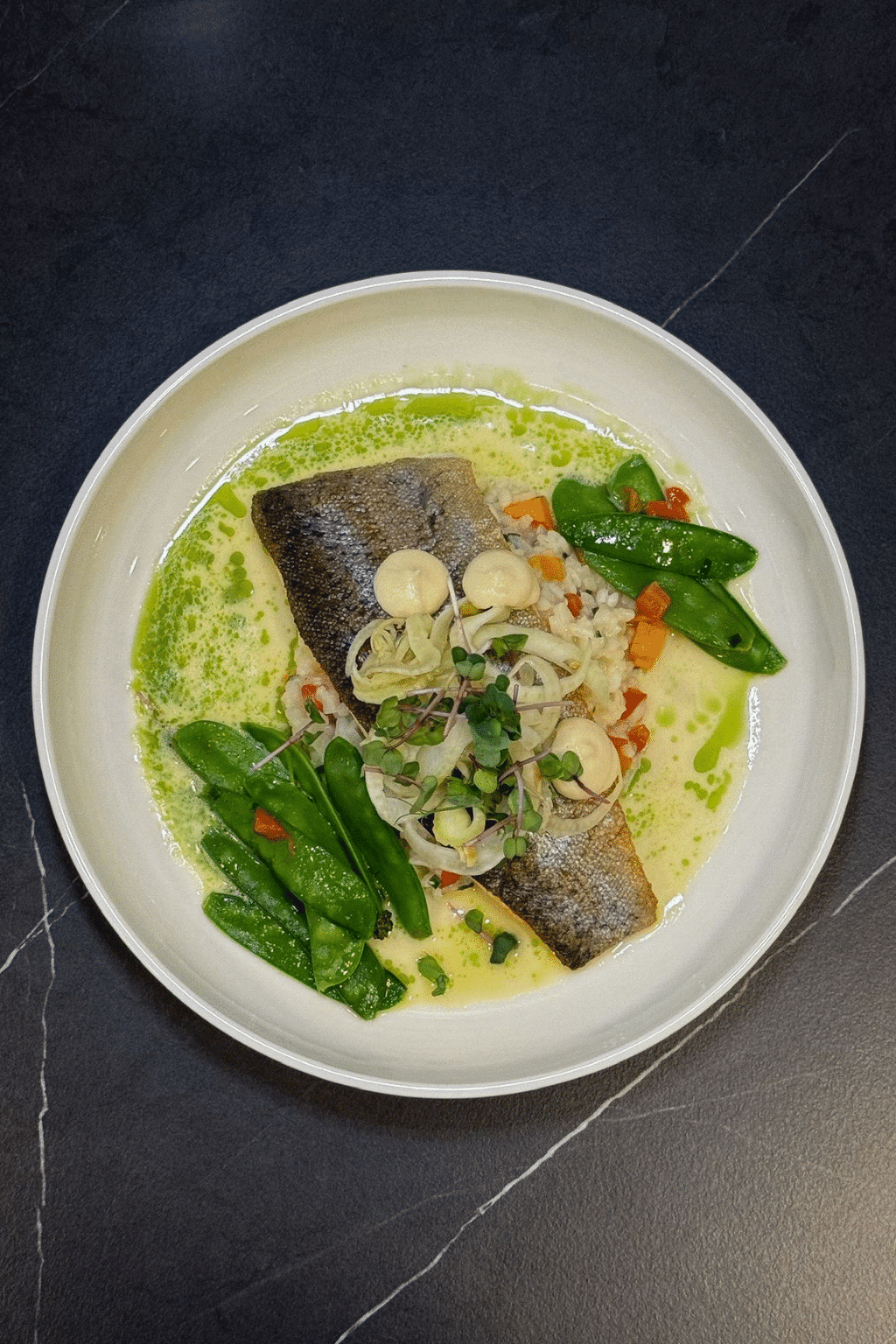 Bärlauchrisotto / Zuckerschoten / Kräuterschaum / Fenchel